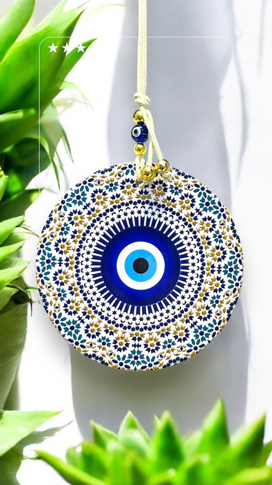 Ceramic Gold Decorated Blue Eye Wall Hanging,New Home Gift. Wall Art, Minimalist Eye Decor’ Ceramic Ornaments Christmas Gifts