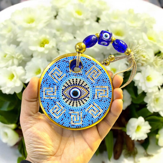 Gold Plated Blue Eye Mosaic Tile Design, Premium Glass Beads Wall Decor,Spiritual Gift for Family,Unique Home Blessing Ornament,Housewarming